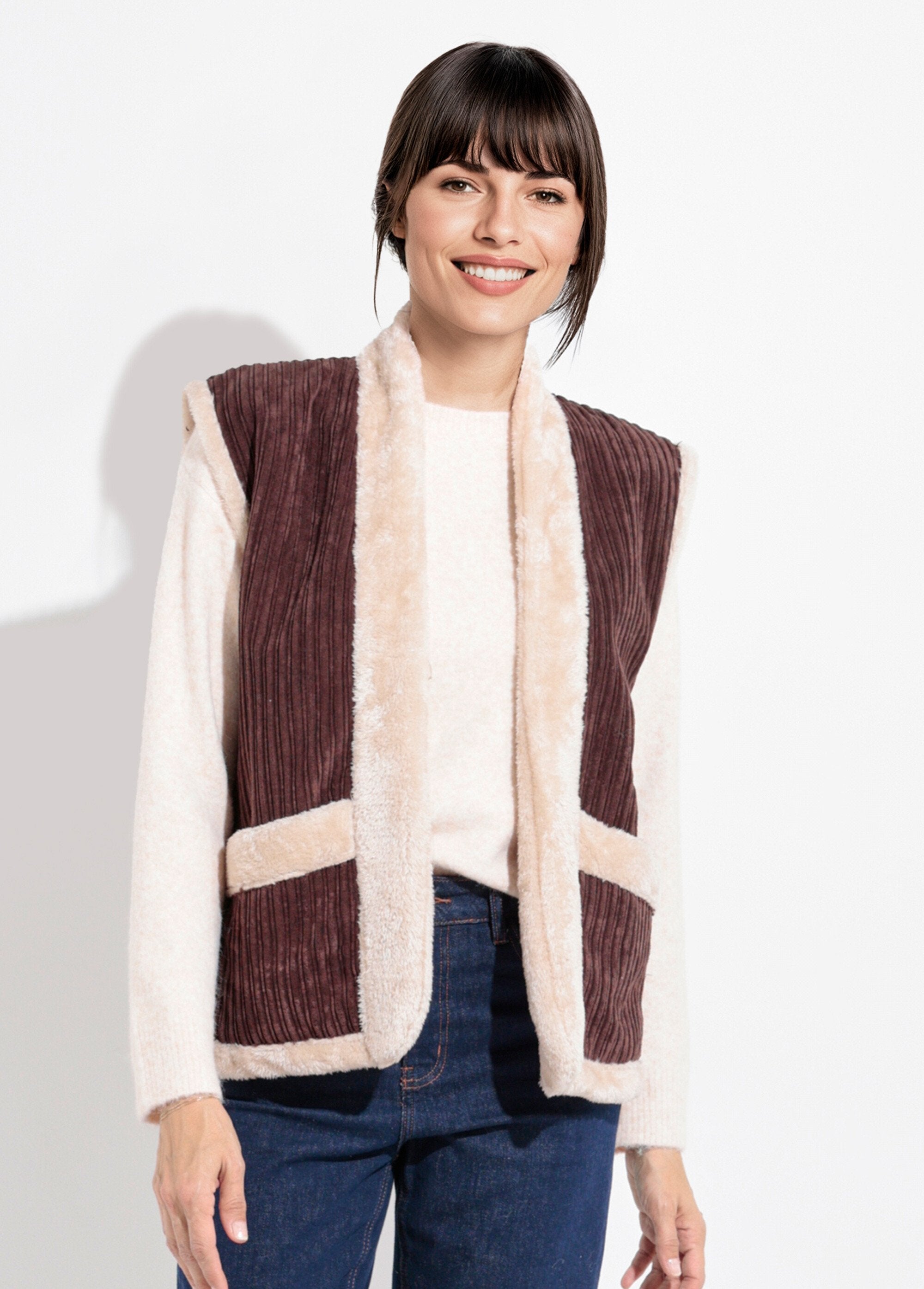 Chaqueta_sin_mangas_de_terciopelo_y_piel_Castaño_FA1_slim Chaqueta_sin_mangas_de_terciopelo_y_piel_Castaño_DO1_slim
