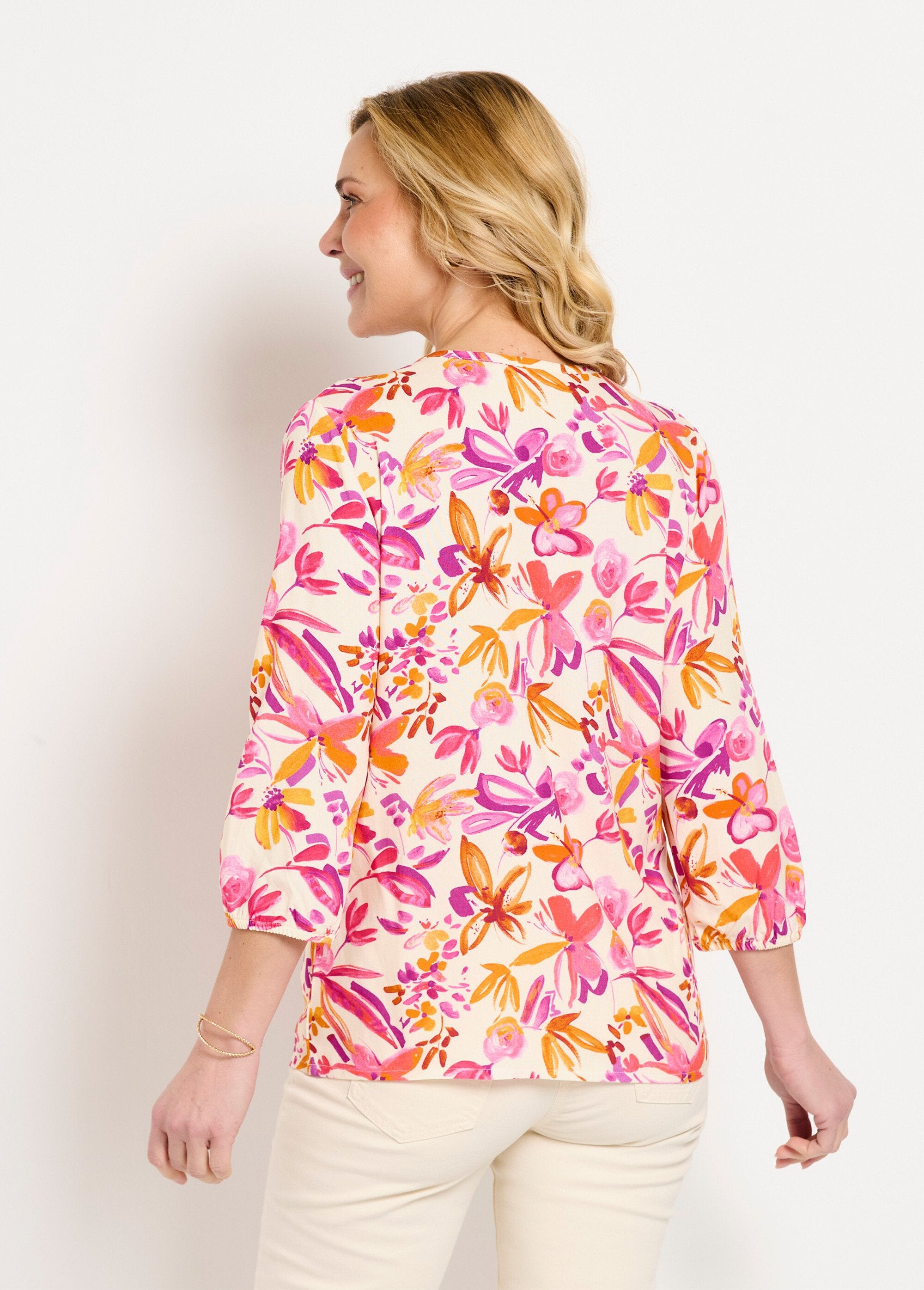 Túnica_floral_larga_y_suelta_con_mangas_3/4_naranja_y_rosa_FA1_slim Túnica_floral_larga_y_suelta_con_mangas_3/4_naranja_y_rosa_DO1_slim
